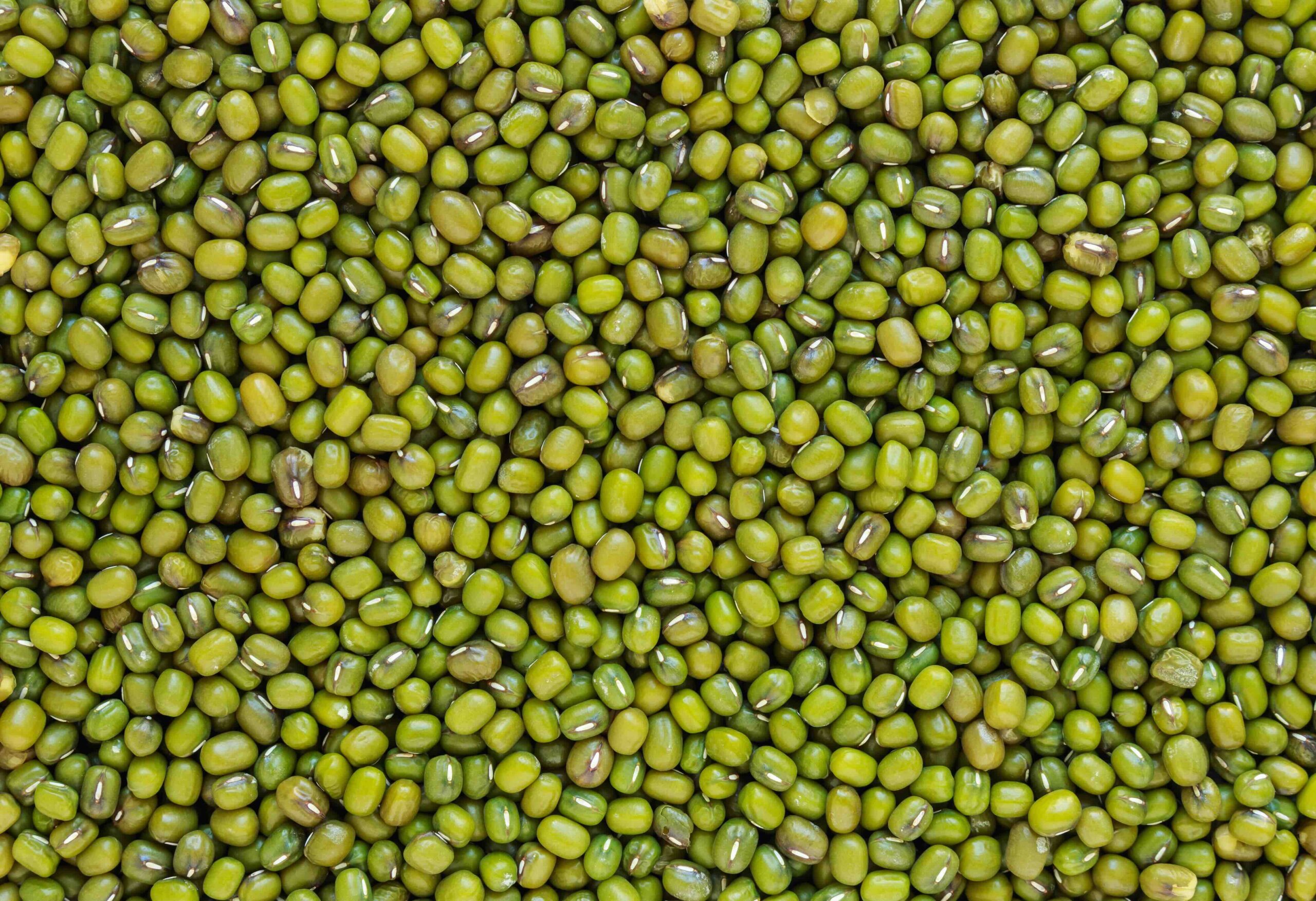 | Whole green mung beans with uniform grain size. |